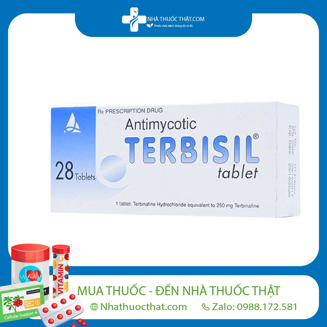 - Hoạt chất: Terbinafine hydrochloride tuơng đương Terbinafine 250mg.