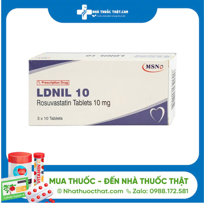 Thuốc Ldnil 10 của MSN Laboratories Private Limited, thành phần chính: Rosuvastatin, là thuốc để điều trị rối loạn lipid huyết. Thuốc được bào chế dưới dạng viên nén bao phim, hình tròn, màu trắng, hai mặt lồi.