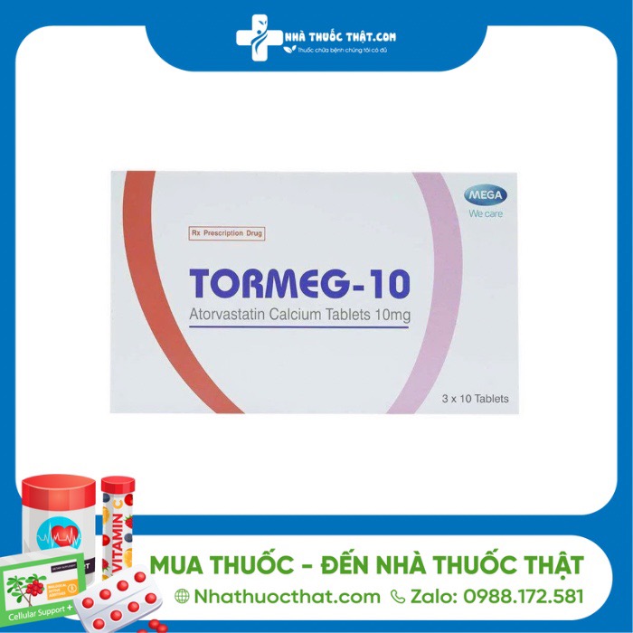 - Tormeg-10 là thuốc chứa hoạt chất Atorvastatin được coi là lựa chọn phương pháp ưu tiên trong điều trị rối loạn lipid máu và hỗ trợ phòng ngừa các biến cố tim mạch xảy ra.