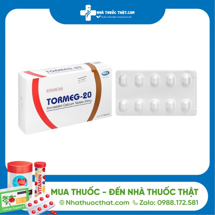 - Tormeg-20 là thuốc chứa hoạt chất Atorvastatin được coi là lựa chọn phương pháp ưu tiên trong điều trị rối loạn lipid máu và hỗ trợ phòng ngừa các biến cố tim mạch xảy ra.