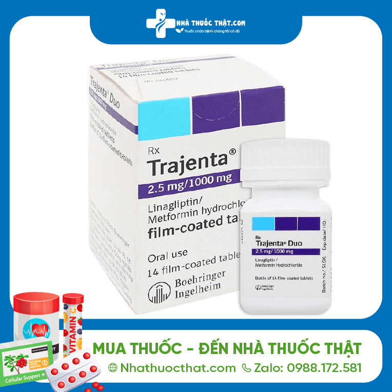 Trajenta Duo 2.5mg/1000mg được chỉ định điều trị bổ sung cho chế độ ăn phù hợp và vận động nhằm cải thiện kiểm soát đường huyết ở những bệnh nhân trưởng thành đái tháo đường typ 2 nên được điều trị đồng thời với linagliptin và metformin,… Dưới đây là thông tin về sản phẩm