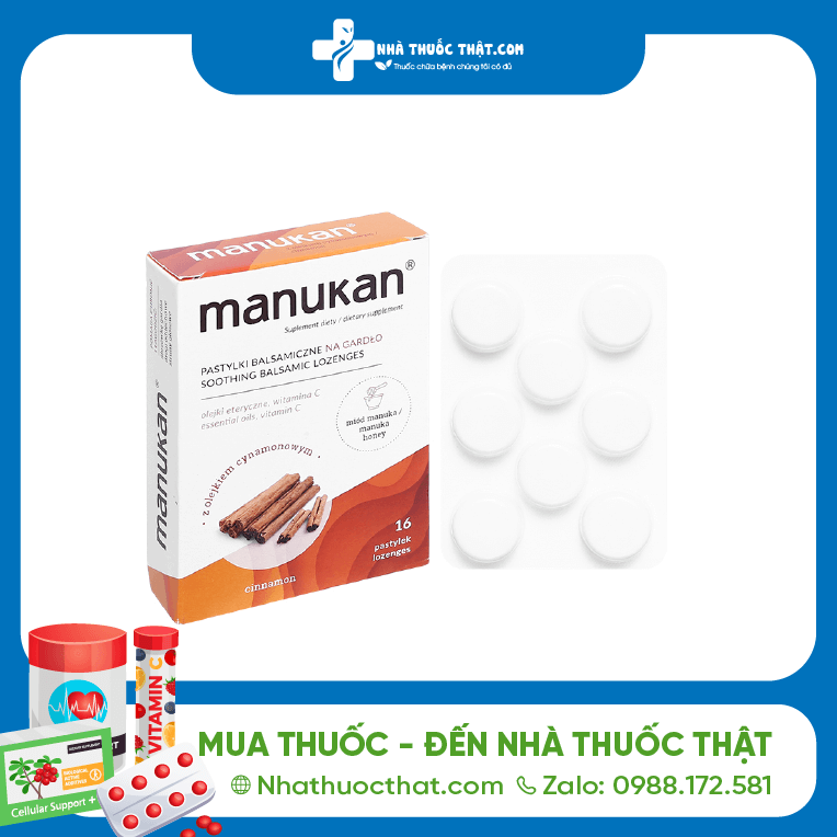 Viên Ngậm Manukan là sản phẩm được biết đến nhiều nhất với công dụng hỗ trợ làm dịu họng, cải thiện tình trạng ngứa họng, rát họng, khàn tiếng, mất tiếng… Dưới đây là thông tin về sản phẩm