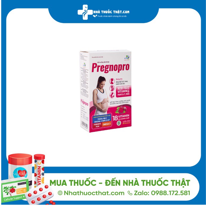 Viên uống Multivita Pregnopro đã được Cục ATTP – Bộ Y tế cấp phép với công dụng hỗ trợ nâng cao sức đề kháng cho phụ nữ có thai, cho con bú, hỗ trợ bổ sung DHA, EPA, Vitamin (B1,B2, PP, B5, B6, Biotin, Acid folic, B12, C, D, E) và khoáng chất (Sắt, Kẽm, Iod) cho cơ thể.