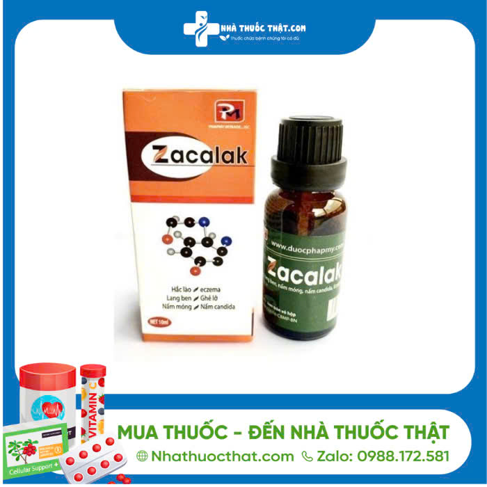 Zacalak có thành phần chính Miconazole nitrat, Acid salicylic, Acid Benzoic… Được dùng trong trường hợp lang ben, hắc lào, nấm candida, nấm móng, ngứa, ghẻ lở…